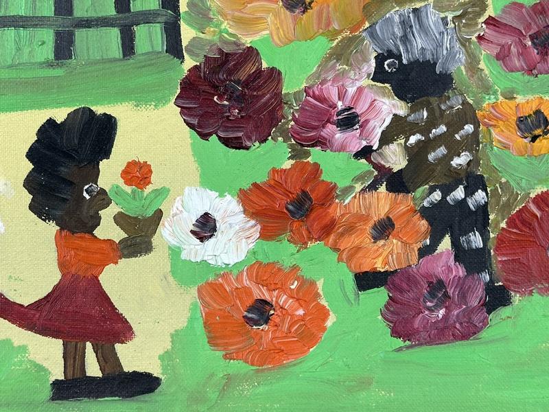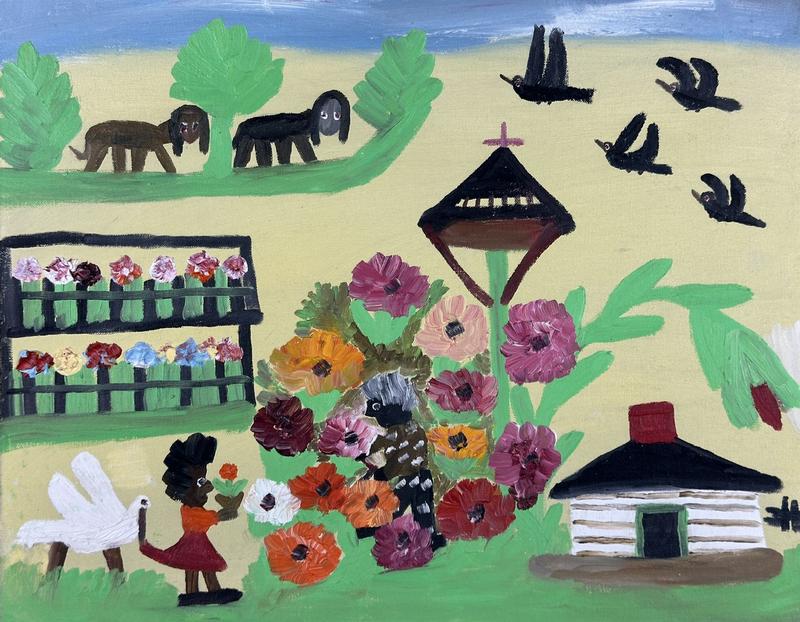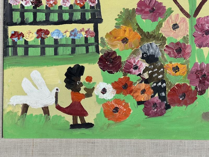 Clementine Hunter was born in the late 1880s on Hidden Hill Plantation in Louisiana which was a site long believed by local legend to have inspired the classic novel "Uncle Tom’s Cabin" due to its isolated and harsh conditions. Her paintings, including the recurring “Uncle Tom in the Garden,” are rooted in the stories, traditions, and landscapes of rural Black life she experienced firsthand. In these vivid garden scenes, Hunter blended elements of legend and memory, filling her compositions with colorful flowers (Zinnias - her personal favorite in the gardens of Melrose), local wildlife, and reimagined characters from Stowe’s novel alongside details drawn from her own community. Through her unique folk style and personal perspective, Hunter preserved the cultural history of her region and offered a meaningful glimpse into plantation life in the early twentieth century.